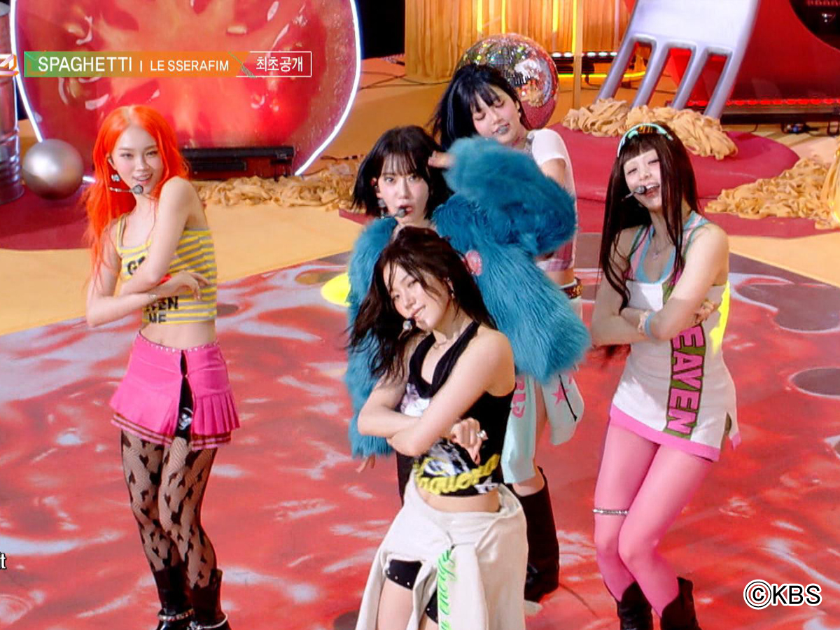 2025/11/05LE SSERAFIMの「SPAGHETTI」の新ビジュに反響!サクラの黒髪ショート、チェウォンのオレンジ髪、"ティースジュエリー"が眩しいユンジンの刺激的なファッションも...