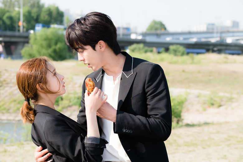 人気Web漫画を土台にしているだけあって、全裸のハベクがスアの白衣をまとうシーンやドSキャラらしい迷言の数々など、序盤はラブコメ色が強めの本作。だが、「神の恩恵を授ける。覚醒せよ」といきなりスアにキスしたり、彼女に意地悪を言う輩に「いじめたければ俺の許可をとれ」とのたまったりと、人間との距離の取り方など知らないハベクの破天荒な行動が予想外のときめきをもたらし、徐々に純愛ロマンスへと塗り替えていく。