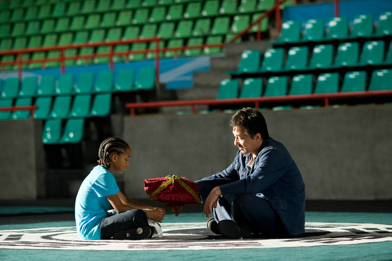 ジャッキーが演じる"カンフーの達人"ハンは、オリジナル版でパット・モリタが演じた"空手の達人"ミスター・ミヤギにあたるキャラクター。ドレの窮地を救う初登場シーンから、鋭い眼光で只者ならぬオーラを放っており、必要最小限の動きだけでカンフーキッズたちを退けていく様子はまさに神技。当時すでに50代半ばだったジャッキーだが、一瞬のキレと滑らかさが同居した老練の体さばきはさすがだ。