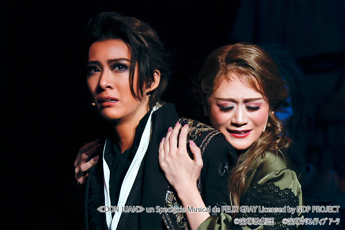 主演の永久輝せあは、明るく天真爛漫な役も似合うが、「冬霞の巴里」のオクターヴ、「激情」 のドン・ホセなど、自身の心の闇に翻弄される役柄にも定評があり、本作でも恋に溺れ愛に死すドン・ジュアンを熱演。とりわけマリアに出会ってから頑なだった心がみるみる解けてゆく様が魅力的で、それだけに結末が切ないドン・ジュアンであった。