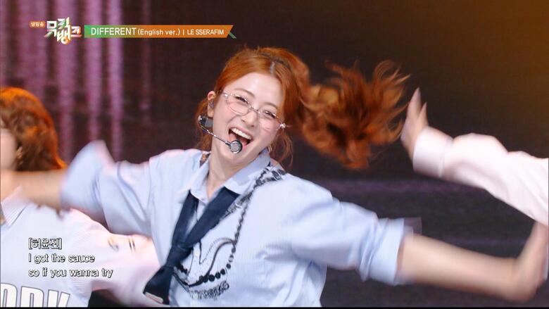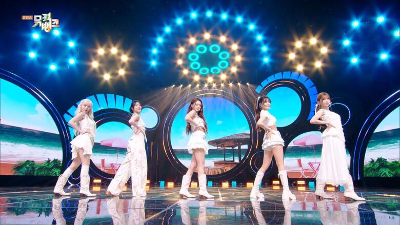オーバーフィットのシャツ&デニムスタイルや、メガネ姿のHUH YUNJIN(ホ・ユンジン)、KIM CHAEWON(キム・チェウォン)の笑顔も印象的で、"エンディング妖精(パフォーマンス後にカメラに抜かれるメンバー)"でのHONG EUNCHAE(ホン・ウンチェ)の舌出しスマイルまで、多幸感に満ちたステージを展開した。