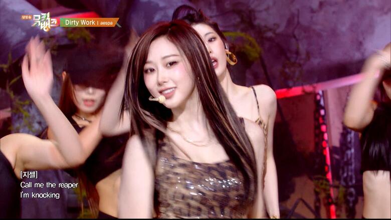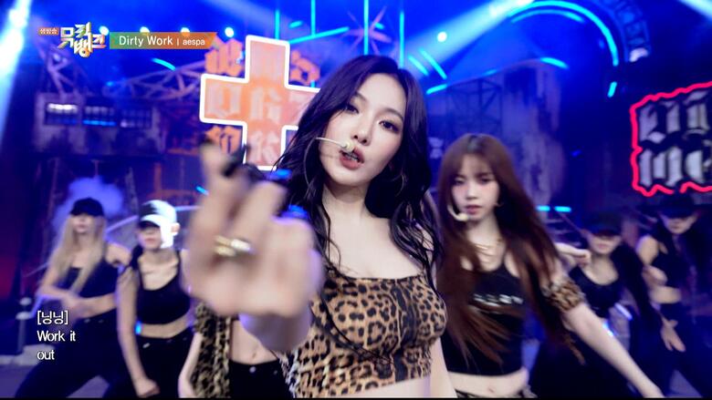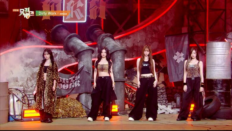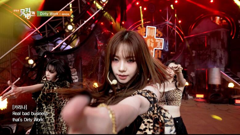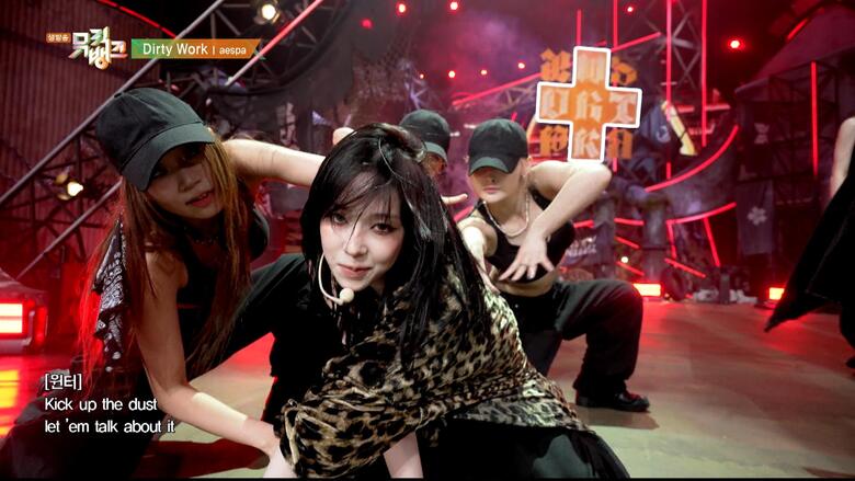 曲のオープニングで、メタルの箱から登場し、ヒョウ柄の衣装や真っ直ぐな強い眼差しで、早くも想像力を掻き立てるメンバーたち。耳に残るシンセベースの音色にマッチしたKARINA(カリナ)の囁くようなボーカル、WINTER(ウィンター)の裏声混じりの美声など、タイトル通りのDirtyな世界観を洗練された歌声で表現した。