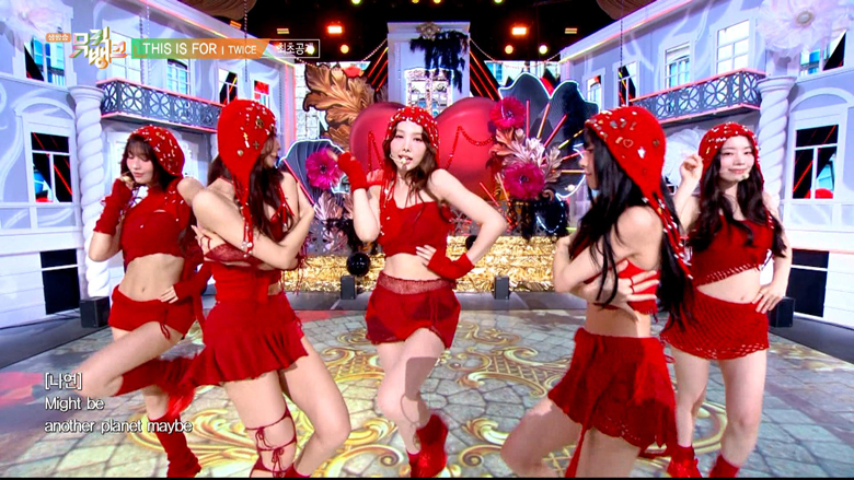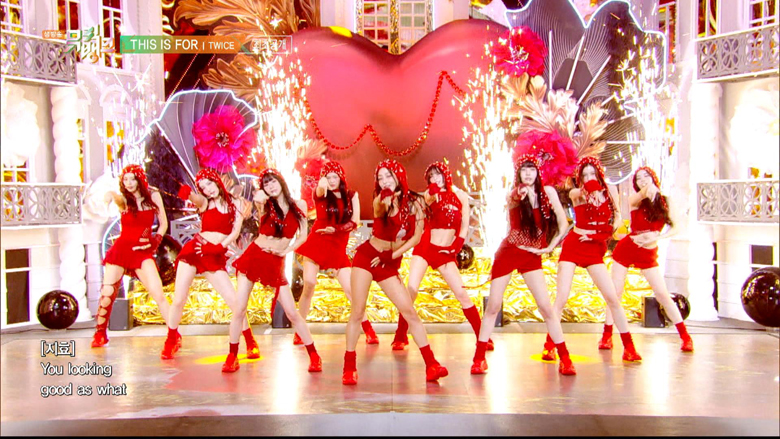 SNSでも"赤ずきんちゃん"と注目を集めている、セクシーな赤ニットの衣装で登場した9人は、HIPHOPベースの小気味良いイントロに乗せたCHAEYOUNG(チェヨン)のラップからパフォーマンスを開始。絶対的センターとして安定感のある歌声を響かせるNAYEON(ナヨン)、神々しい美しさを放つ"マンネ(末っ子)"のTZUYU(ツウィ)...と、流れるようなリレーで魅了。その度に沸き起こる大歓声からも、約3年8ヶ月ぶりとなる今回のカムバックをファンがいかに待ち望んでいたのかが伝わってくる。