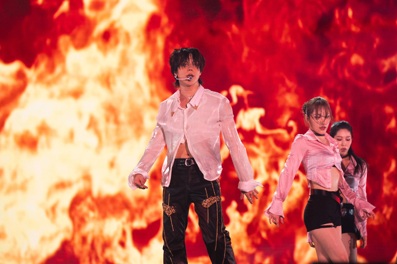 「お久しぶりです。テミンです」と柔らかい表情で挨拶をすると、彼の出番前に急に降り出した雨について言及。「僕は"雨男"...。それを思い出しました(笑)」とはにかむ。「Guilty」では情熱的かつアダルトな姿で会場中を釘付けにし、「Black Rose (feat. Kid Milli)」では驚くべき声量で圧倒する。そして「秋から日本で6年ぶりのアリーナツアーをします(※9月13日(土)開幕の「2025 TAEMIN ARENA TOUR」)」と嬉しい報告を届け、燃える炎の特効を背負ってラスト曲「IDEA」をパフォーマンスした。