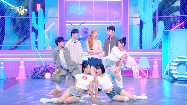 野球のユニホーム風の衣装に身を包んだSUIとKYAは、デビュー1年目の新人ながら、ソロとしてカムバックしたMAMAMOOのMoon Byul(ムンビョル)とRed VelvetのJOY(ジョイ)相手にも堂々とインタビューを遂行。さらにSUIがMoon Byulと「Goodbyes and Sad Eyes」を、KYAがJOYと「Love Splash!」をコラボし、完璧なダンスでも大先輩を喜ばせていた。