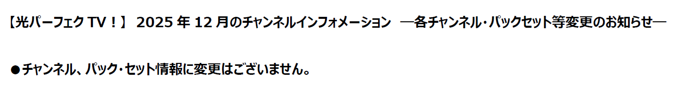 【光パーフェクTV!】2025年12月のチャンネルインフォメーション ―各チャンネル・パックセット等変更のお知らせ―