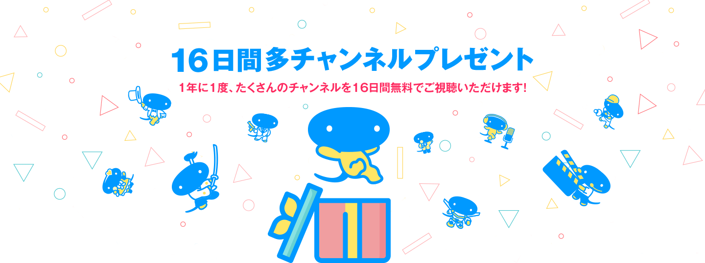 たくさんのチャンネルを16日間無料でご視聴いただけるプレゼントです。