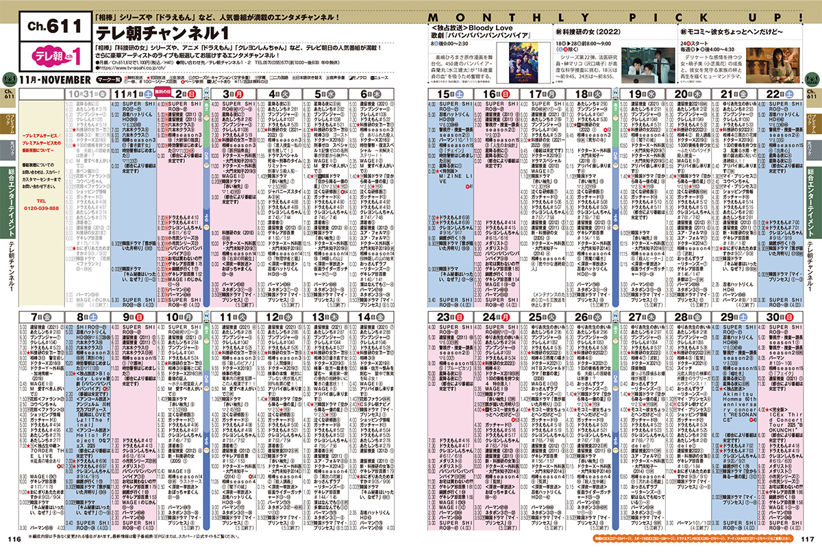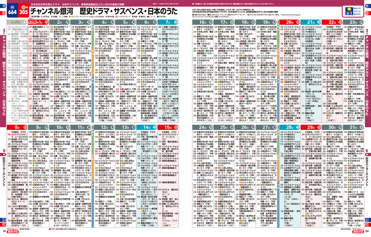 1日ごとに一覧できる月間番組表が好評のオフィシャルガイド誌です。たくさんのチャンネルで放送される番組の中から、毎月おすすめの番組の特集記事や解説記事、気になるスターのインタビューをお届けしています。充実したBS番組表や番組情報もあり、デジタル放送&多チャンネル時代を手軽に楽しむための羅針盤となる一冊です。